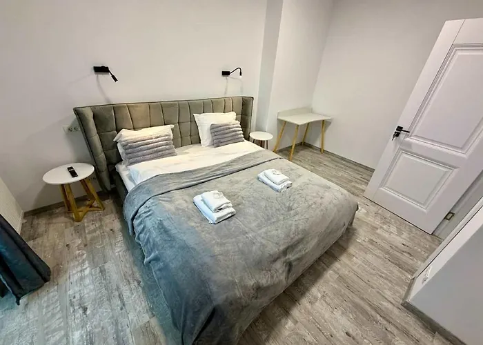 - ❓What are the good restaurants not far from the apartment?Guests can choose to dine at Ritmo Cafe, a restaurant offering international dishes located 400 meters from the apartment. Alternatively, they can relish Romanian dishes at Seven Inn Bar & Grill, conveniently situated approximately 500 metres away.